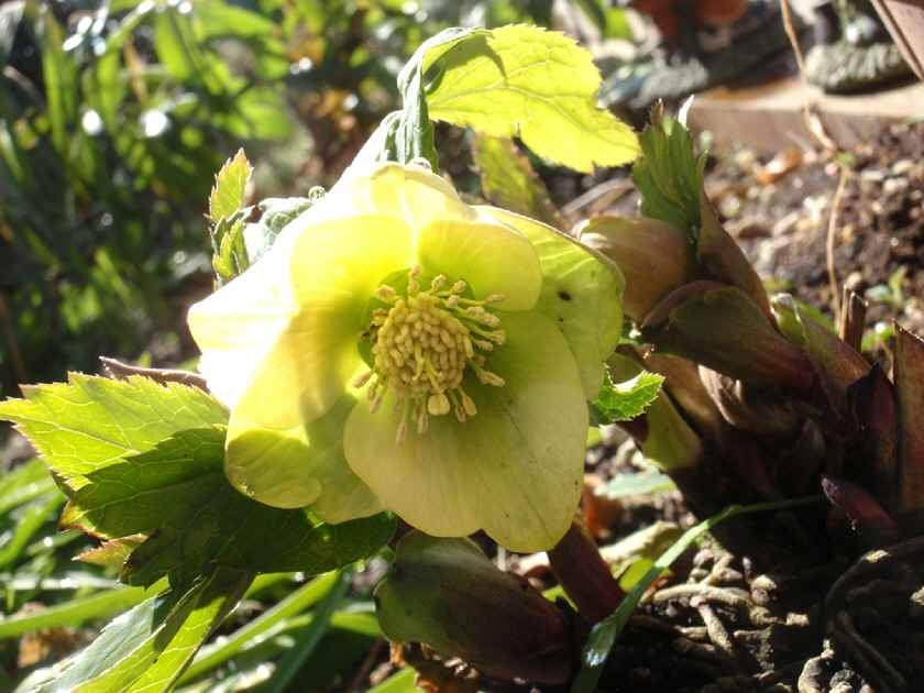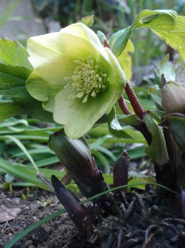 庵の庭の他の クリスマスローズ も、これから咲く蕾を膨らませています。