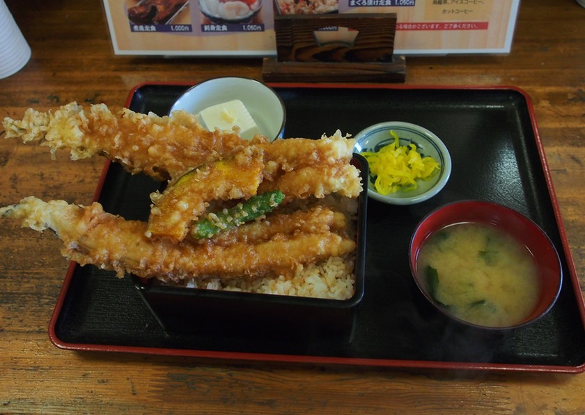 帰りの昼食は、江戸前穴子 の天重です。
