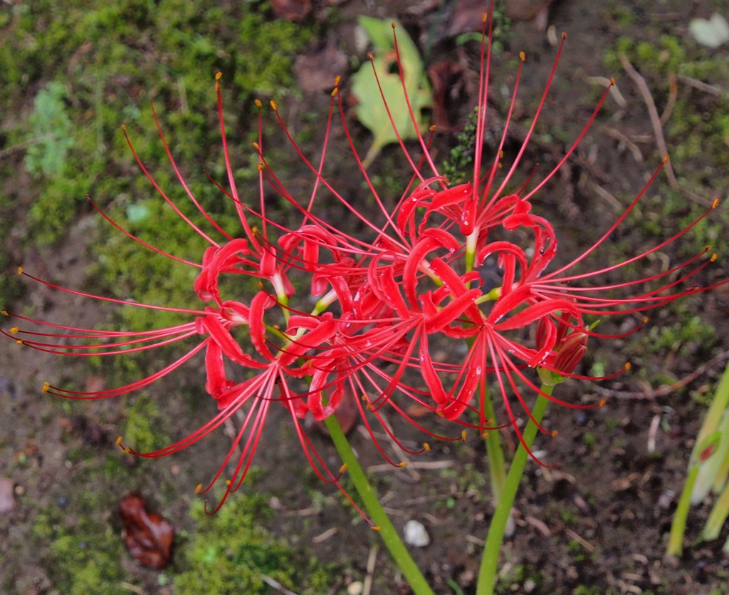 墓の近くには、紅白の彼岸花が真っ盛り