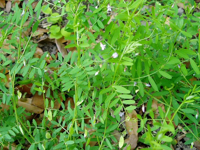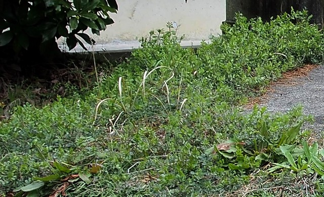 スギナの若芽がリュウノヒゲの合間から