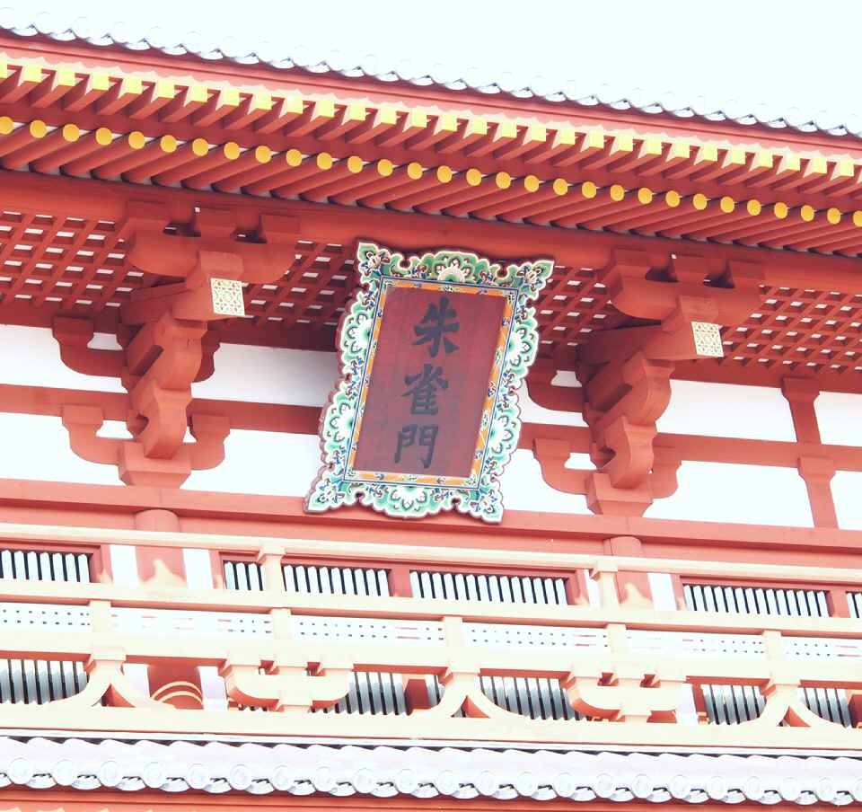 平城京跡の敷地内の 朱雀門 の近くに近鉄線が通っているのには