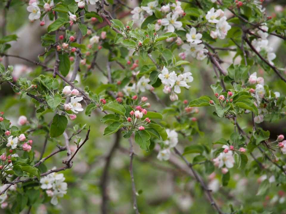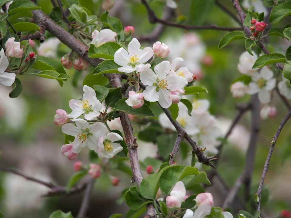 もう リンゴの花も咲き出していました。